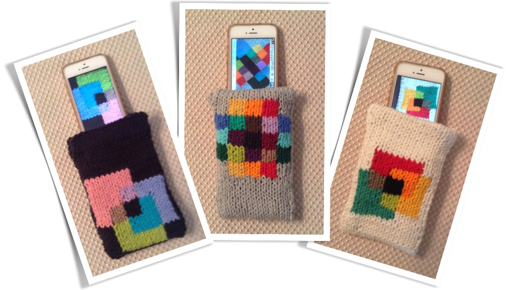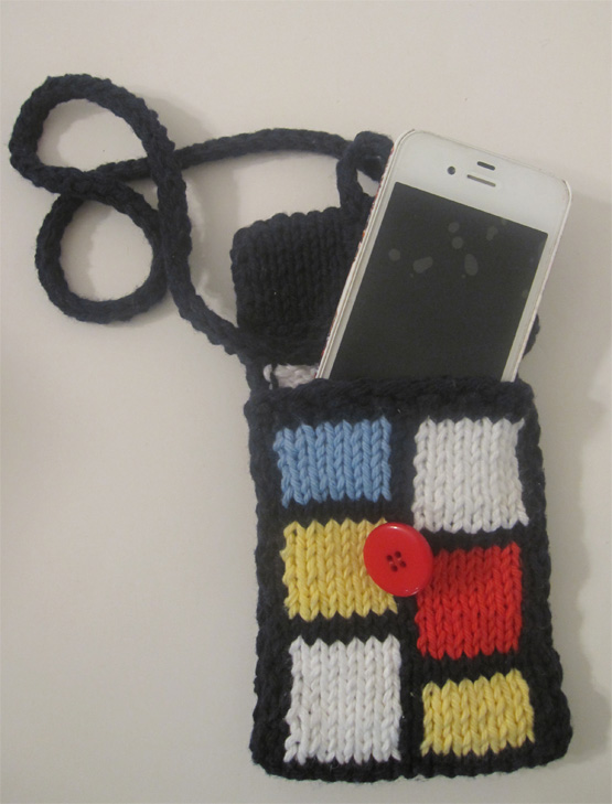 The .pdf file with patterns for 2 iPhone purses is available via Ravelry only for $0.99:  iPhone Purses Mondrian Style