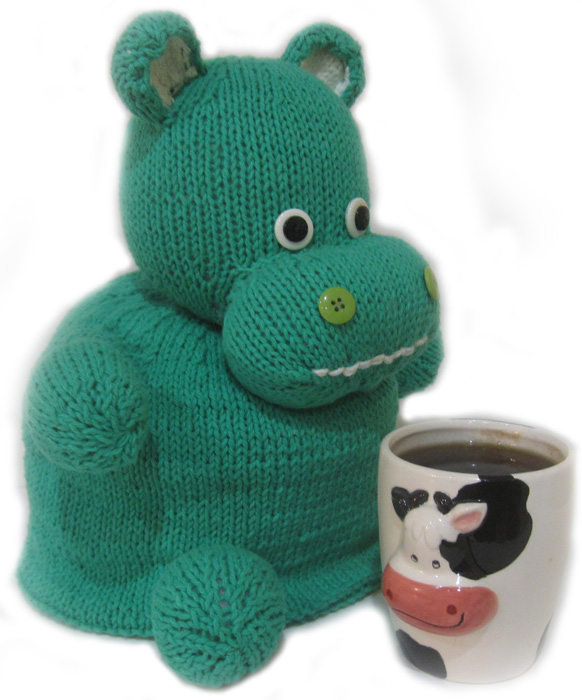 Hippo Tea Cozy and Knitkinz Green Hippo