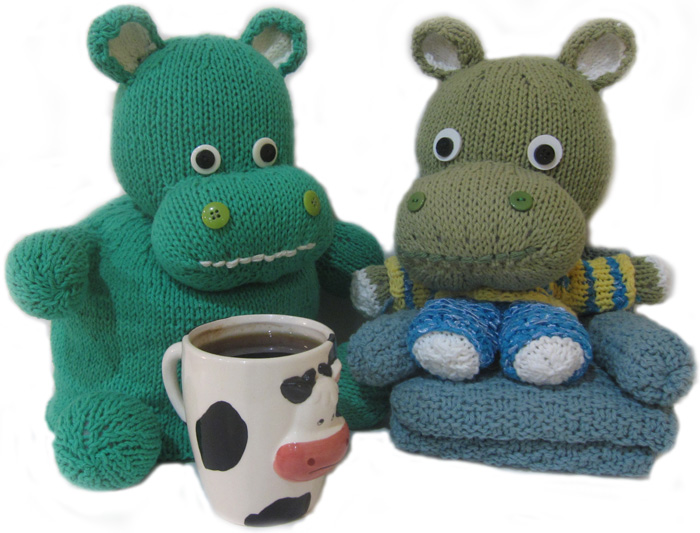 Two Patterns: Hippo Tea Cozy and Knitkinz Green Hippo for $7