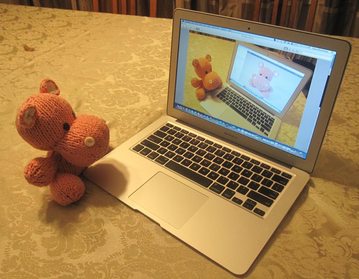 This 6” tall new Knitkinz Puppy toy can sit next to you in your office and look at your computer. The pattern for the Puppy: Knitkinz Puppy - for Your Office $3.00